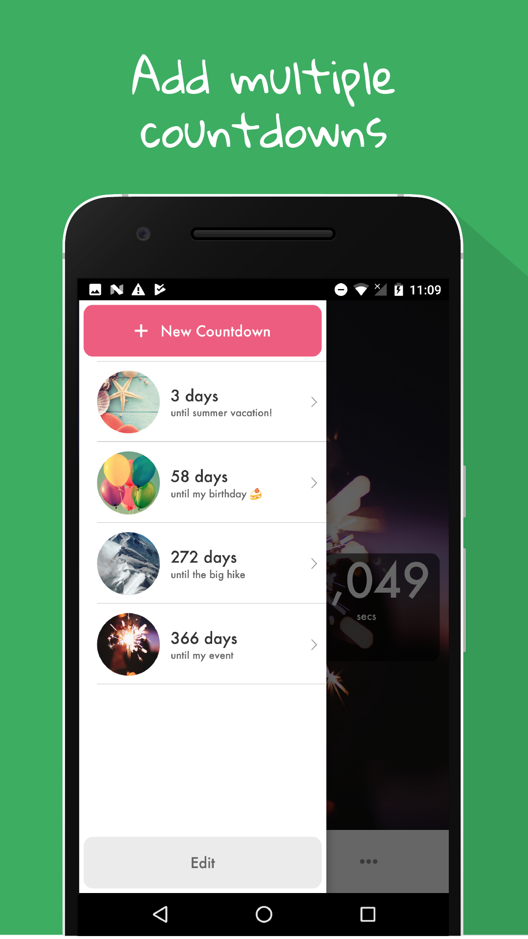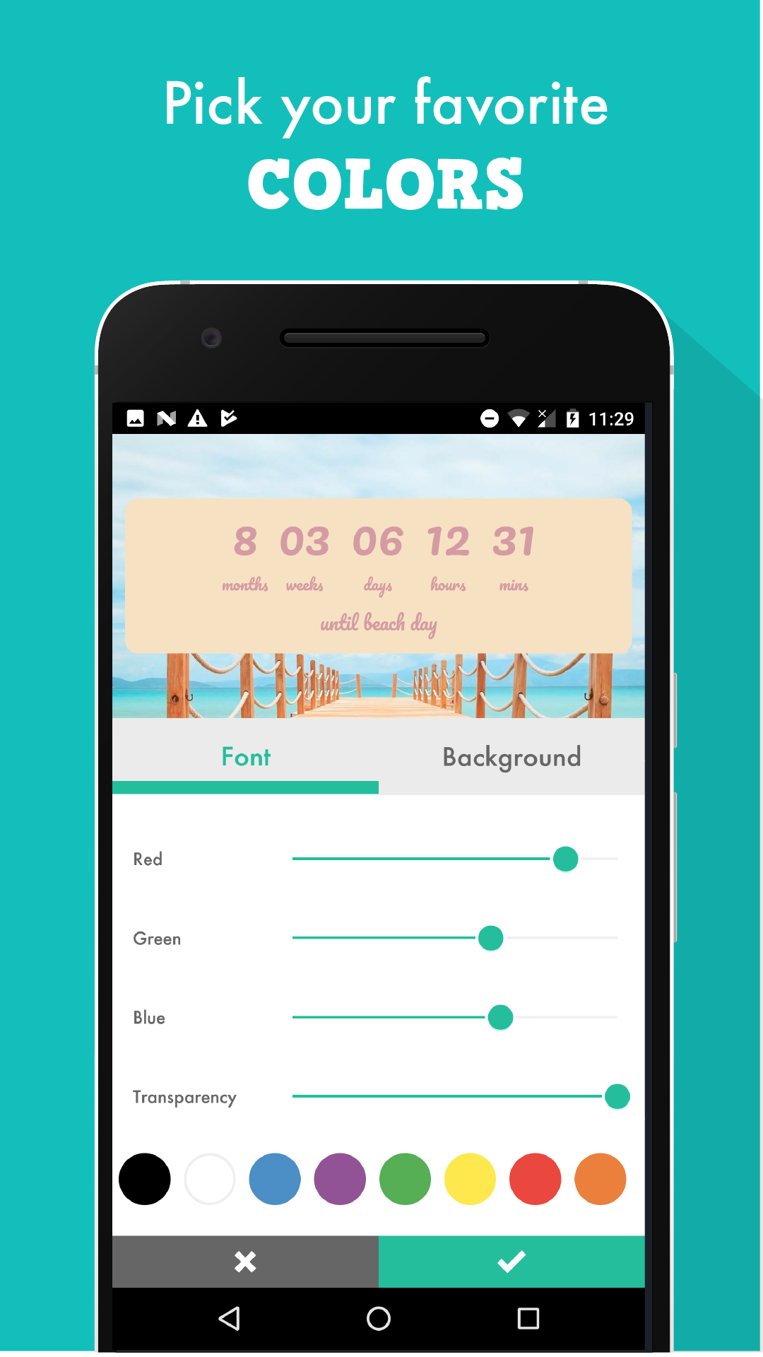 Countdown is one of the most downloaded countdown apps in the Play Store. For this design, I went with a bottom-docked edit panel that allows users to preview any changes they make to their countdown as they are making them. Transitions and animation were key in this project to let the user know how one screen transitions into the next and to clarify the hierarchy of information in this surprisingly complex app.