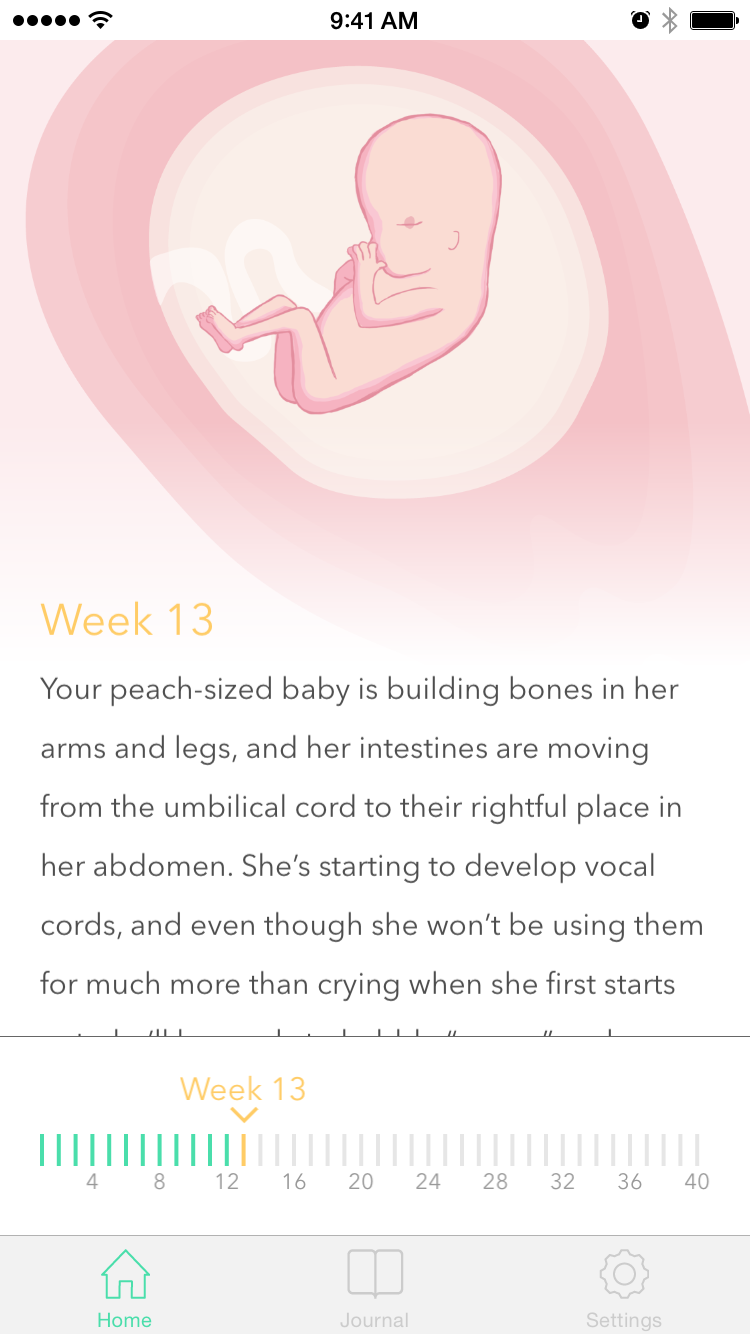 Pregnancy Tracker was the first app I designed from scratch that made it to production. It employs intuitive full-screen swipe gestures to navigate between weekly and daily articles about pregnancy. I also illustrated images of all 40 weeks of the baby's development.